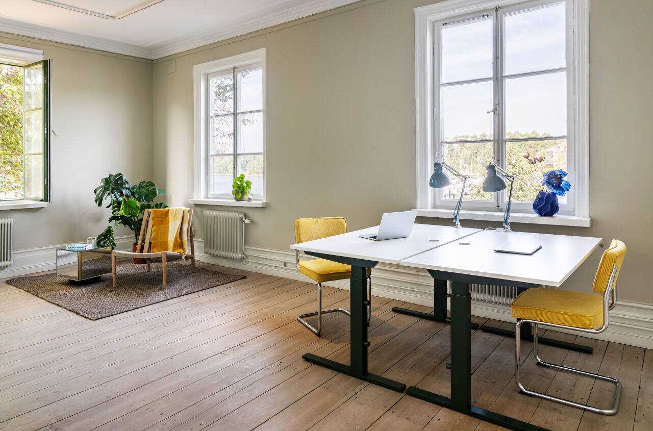 Välkommen till 500 m² kontorsglädje i Gustavsbergs hamn. Kom gör oss sällskap på vårt kontorshotell precis intill vattnet.