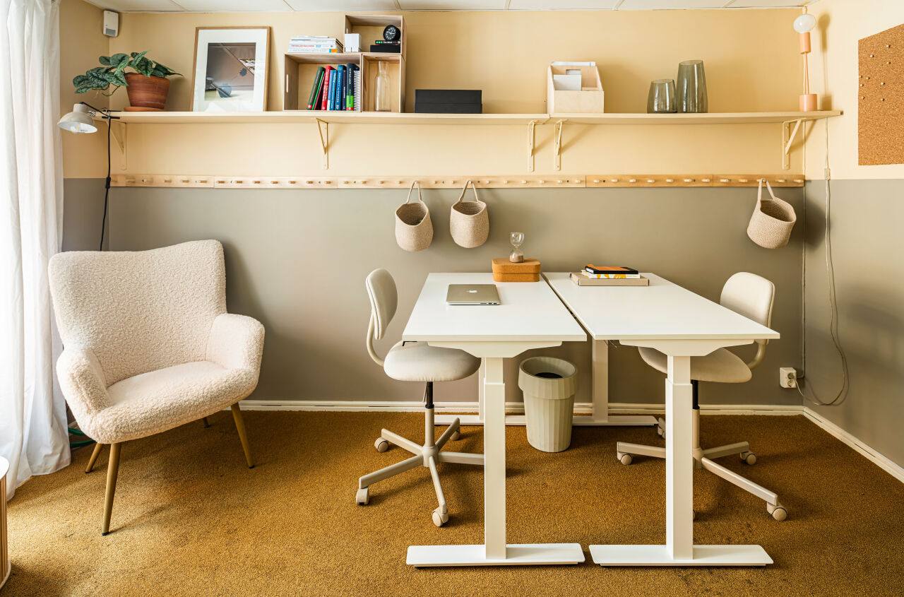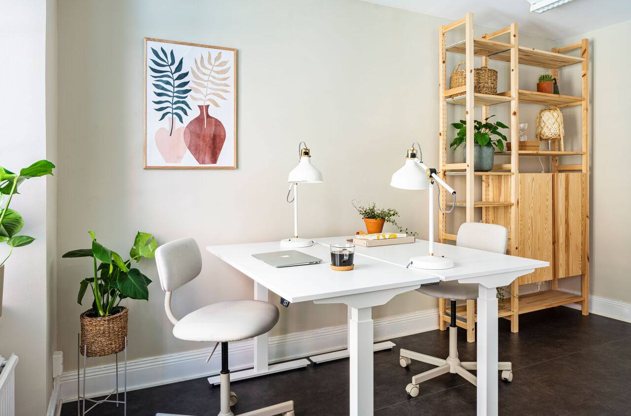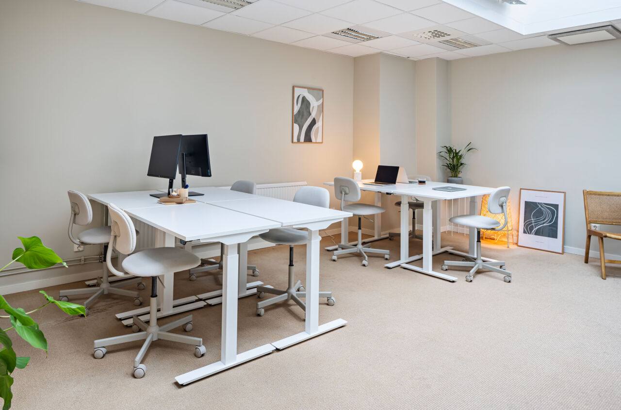 Från den 1 februari 2026 finns ett av våra trivsamma kontorsrum tillgängligt. Rummet är ca 30 kvm stort, har tre generösa takfönster och passar perfekt för 5–6 personer. Det kan hyras omöblerat eller piffas till mot en engångskostnad. Exempel på hur ett piffat rum kan se ut ser du på bilderna här intill.